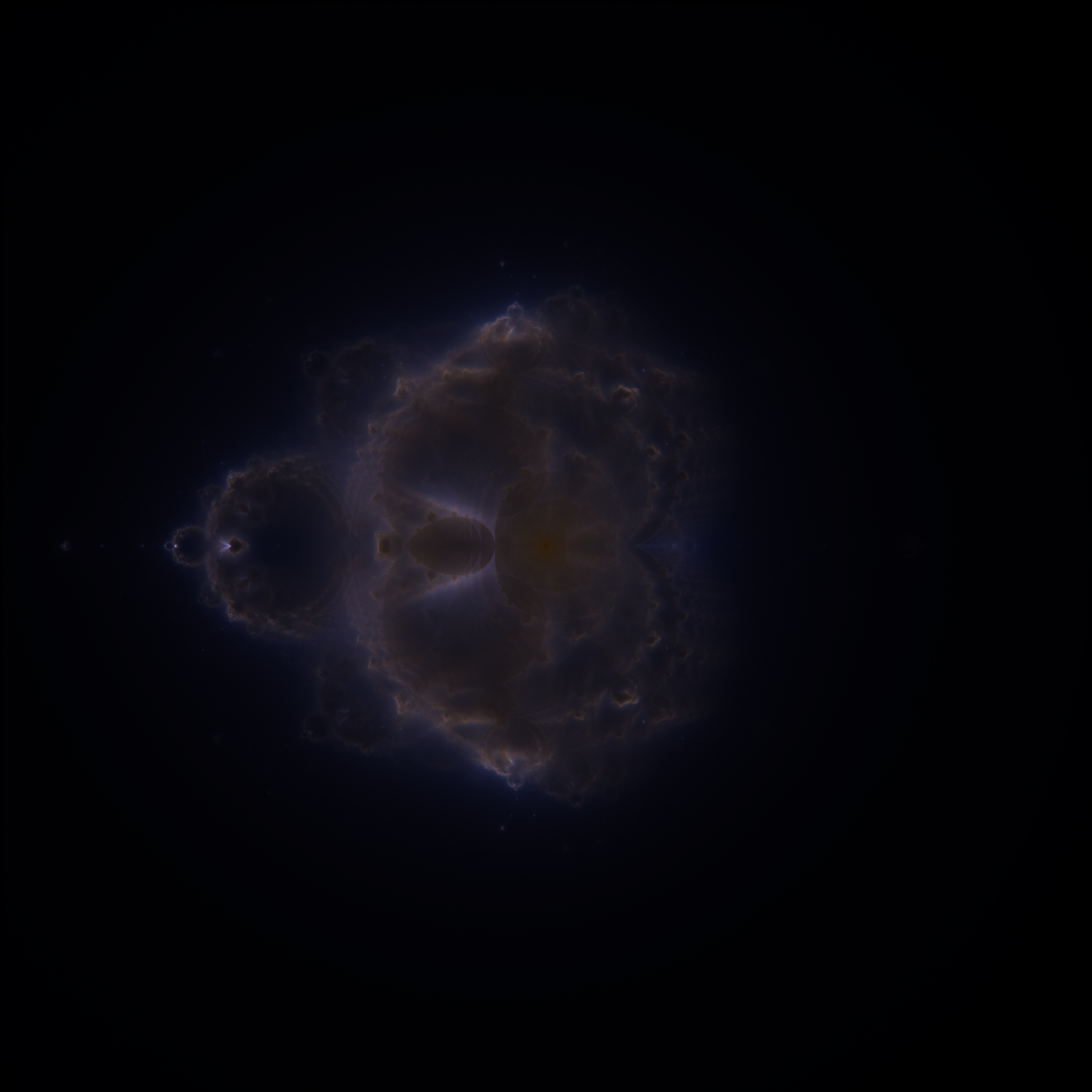 After evaluating a high enough number of points we can render the Buddhabrot based on the probability of the points hitting a certain spot.